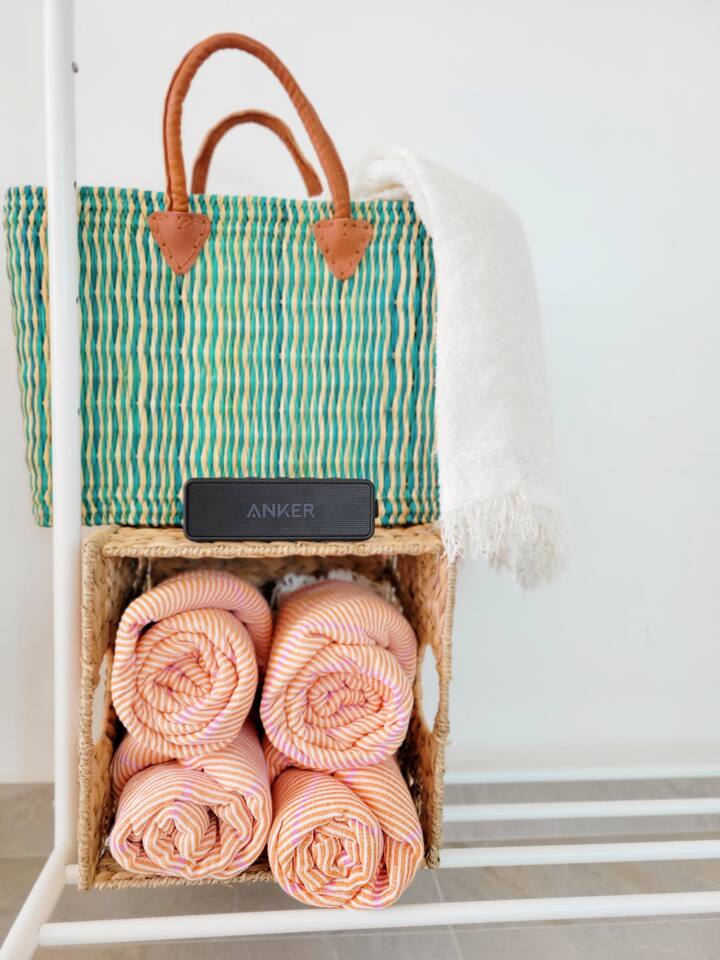 - Beach essentials Beach towels, umbrella, beach blanket, snorkeling gear
