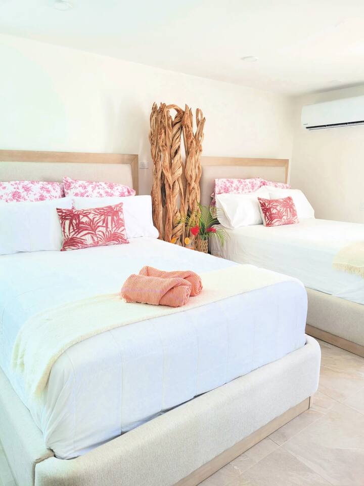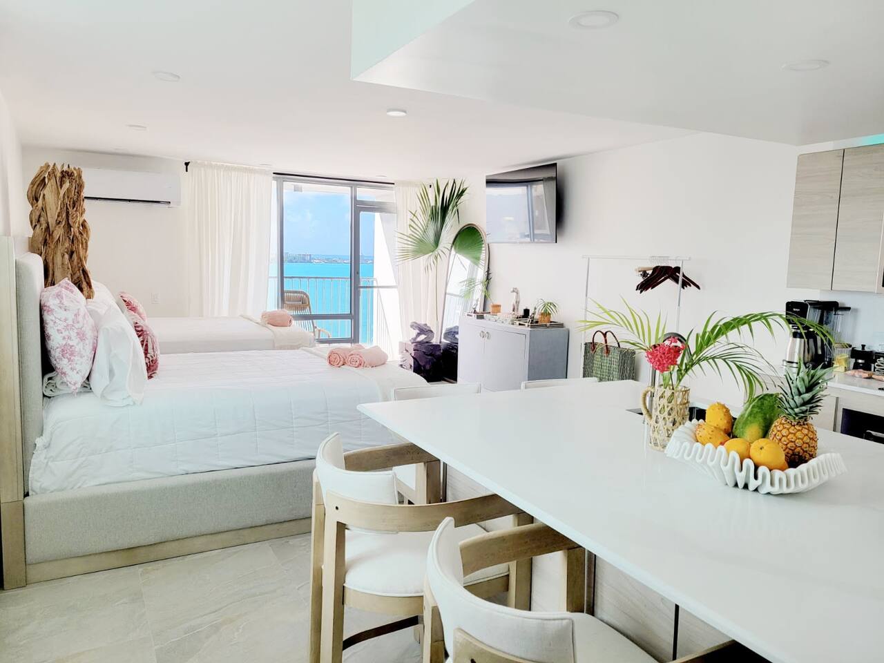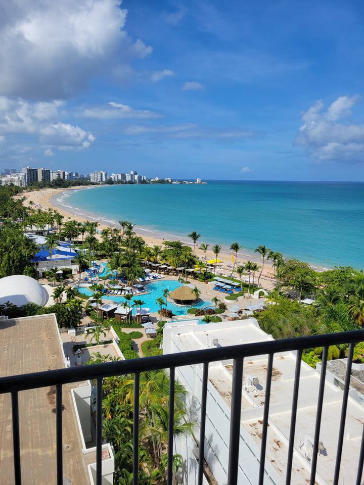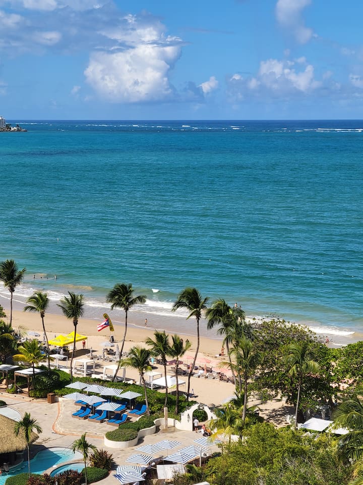 The space 🏆 ESJ'S MOST BEAUTIFULLY DESIGNED APARTMENT • OCEANFRONT LUXURY THE DIFFERENCE IS IN THE DESIGN This isn't just another ESJ rental - it's THE standout unit guests compare all others to. Recently remodeled with designer touches you won't find anywhere else in the building, this apartment sets the gold standard for style and comfort. Compare for yourself: Browse other ESJ listings, then come back. You'll see why our design, finishes, and attention to detail are unmatched. What Makes This Unit Special: 🎨 Professionally designed interior - curated furniture, modern finishes, elevated aesthetics ✨ Boutique hotel quality - every detail thoughtfully selected 🪟 Floor-to-ceiling windows - maximizing those million-dollar ocean views 🍸 Custom kitchen island with bar seating - not standard in other units 💎 Premium bedding & linens - sleep like you're at a 5-star resort The View That Sells Itself: Wake up to breathtaking Caribbean sunsets from your private 11th-floor balcony. Watch planes glide into SJU Airport while sipping cocktails at your bar. This isn't just an ocean view - it's a daily show. Why Guests Choose Us Over Other ESJ Units: ✈️ 5 minutes from SJU Airport - easiest arrival/departure in San Juan 🏖️ Steps to the beach with complimentary chairs & umbrella included 🛏️ 2 Queen Beds - sleeps 4 in actual comfort (not pullout sofas) 🍳 Full gourmet kitchen with oversized island - rare for this building 🅿️ Free parking included (1 dedicated spot) 🧺 In-unit washer/dryer - most units only have building laundry 🔑 Seamless self check-in anytime after 3 PM Elevated Amenities You Won't Find in Standard Units: 🎯 Designer kitchen island - perfect for morning coffee or evening cocktails 📺 Smart TV with streaming capabilities 🧳 Complimentary luggage storage in lobby 🪑 Premium beach setup - chairs & umbrella ready to go ☕ High-end appliances & cookware - actually cook gourmet meals 🛁 Spa-quality bathroom with premium fixtures 🏪 24/7 supermarket just 5 minutes away The ESJ Advantage: Direct beach access (7 AM-7 PM) • Secured building • Oceanfront location • Unbeatable airport proximity Good to Know: Building pool currently closed for renovations Occasional power outages possible (generator covers common areas) One plush towel set per guest provided In-unit laundry available 24/7 for your convenience Don't Settle for Standard: Most ESJ rentals are basic, cookie-cutter units. This apartment was designed to impress - from the moment you walk in to the last sunset you'll watch from the balcony. Look at other listings. Compare the design. Then book the best. Your elevated San Juan experience starts here.